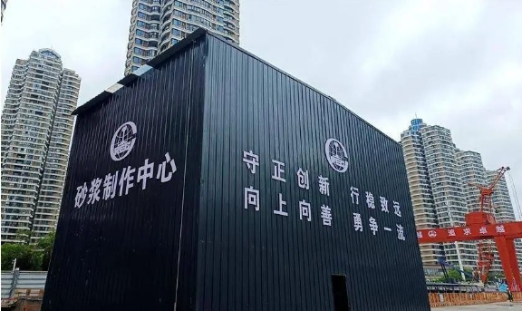 雷凱介紹,博覽路站項目正常生產(chǎn)一天需要約160噸干拌料,露天施工對周邊社區(qū)易產(chǎn)生噪聲污染。項目部經(jīng)過集思廣益,根據(jù)用料的情況,量身設(shè)置了砂漿制作中心,經(jīng)過現(xiàn)場噪音檢測器實測,僅為50分貝。密閉的環(huán)境,把砂漿制作所產(chǎn)生的揚(yáng)塵也降到了最低。