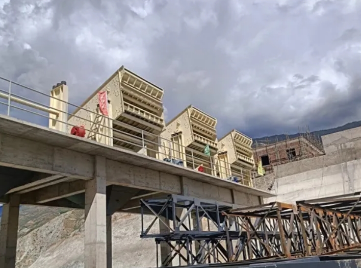 中電建旭龍砂石項目部完成第一臺大型設備——高線砂石加工系統(tǒng)三篩車間圓振動篩吊裝,標志著系統(tǒng)將正式進入金屬結(jié)構(gòu)安裝和機電設備安裝的關鍵階段。該項目于2024年3月開工,計劃年底投產(chǎn)。