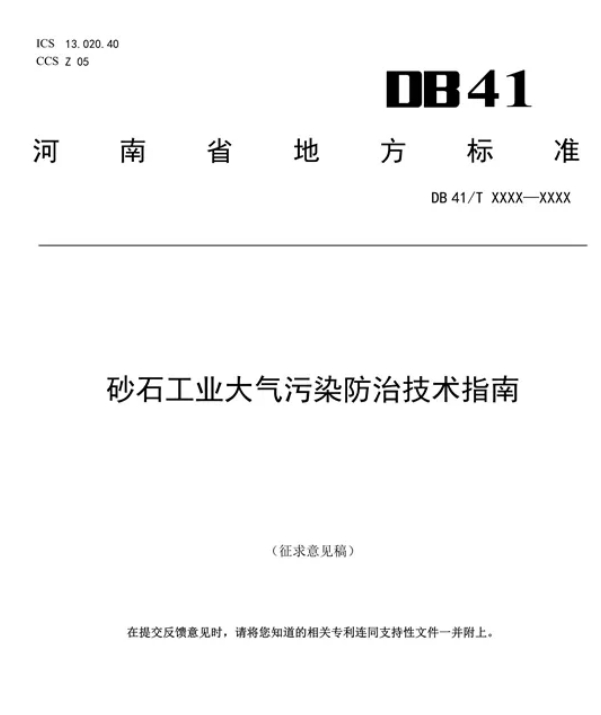 河南省生態(tài)環(huán)境廳 關(guān)于《砂石工業(yè)大氣污染防治技術(shù)指南》 公開(kāi)征求意見(jiàn)的公告