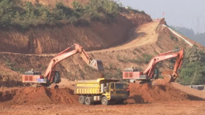 中電建廣東省郁南縣桂圩鎮(zhèn)沖旺嶺礦區(qū)項目自2024年1月動工以來,各項工程正加快推進(jìn),目前總體形象進(jìn)度已完成約80%,項目預(yù)計今年3月投產(chǎn)。 據(jù)悉,沖旺嶺礦區(qū)位于廣東云浮郁南縣桂圩鎮(zhèn),開采礦種為建筑用花崗巖和砂巖,礦山采用露天開采,溜井平硐開拓運(yùn)輸方案,可采資源量達(dá)12.57億噸,年產(chǎn)能為5500萬噸,是華南地區(qū)建設(shè)規(guī)模最大的單體建材礦山,項目總投資近200億元。 2022年10月18日,中電建(云浮)新材料有限公司以78.5億元競得該項目礦權(quán);2024年1月9日,該項目正式開工。 據(jù)了解,郁南沖旺嶺項目由礦山開拓運(yùn)輸與開采工程,砂石工廠、長膠廊道三大系統(tǒng)工程組成,目前礦山北側(cè)交通硐硐室破碎已完成開挖,正在進(jìn)行設(shè)備安裝,長膠廊道全長21公里,隧洞15.5公里,現(xiàn)已完成14公里,預(yù)計在春節(jié)前除一號隧洞外全部貫通。 據(jù)介紹,目前沖旺嶺礦山項目正處于工程建設(shè)關(guān)鍵時期,礦區(qū)內(nèi)8條采礦道路已全部貫通,交通硐、運(yùn)輸硐、給料機(jī)等主要硐室已貫通。碼頭側(cè)加工區(qū)正在進(jìn)行堆場地弄、車間建筑物、構(gòu)筑物基礎(chǔ)部位的混凝土澆筑。 加工區(qū)成品堆場目前土方地基基礎(chǔ)處理已完成,正在開展地弄處理,地弄交扎完成后進(jìn)入下一步設(shè)備安裝工序,預(yù)計春節(jié)前后混凝土澆筑工作會告一個段落,現(xiàn)在總體大的進(jìn)度完成80%左右,目前正在為3月9日投產(chǎn)作最后沖刺。 沖旺嶺礦山項目正式達(dá)產(chǎn)后,將依托西江水運(yùn)便利和大灣區(qū)都市圈建設(shè)市場,成為粵港澳大灣區(qū)最重要的砂石供應(yīng)基地,為云浮乃至粵港澳大灣區(qū)持續(xù)提供綠色、優(yōu)質(zhì)、充足的砂石產(chǎn)品。沖旺嶺礦山項目投產(chǎn)后將為郁南新增財政收入約5.7億元/年,提供直接就業(yè)崗位1200余個,進(jìn)一步帶動周邊餐飲、住宿等服務(wù)業(yè)。