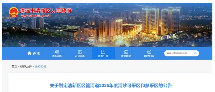 近日,廣東省清遠市清新區(qū)水利局對其清新區(qū)區(qū)管河道2025年度河砂可采區(qū)和禁采區(qū)劃定。 據(jù)悉,清新區(qū)區(qū)管河道2025年度河砂可采區(qū)共5個,其中濱江禾云段共2個采區(qū),濱江龍頸段共3個采區(qū)。5個采區(qū)長約為8.549km。 一、河道范圍 清新區(qū)區(qū)管河道指(除北江外)清新區(qū)轄區(qū)內所有河道。 二、河砂可采區(qū) 清新區(qū)區(qū)管河道2025年度河砂可采區(qū)共5個,屬于濱江河段,具體河砂可采區(qū)范圍如下: 三、河砂禁采區(qū) 上述可采區(qū)以外的河段均為禁采區(qū)。 特此公告。