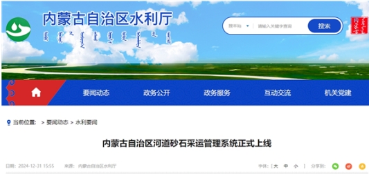 2024年12月上旬,內(nèi)蒙古自治區(qū)水利廳聯(lián)合自治區(qū)交通運(yùn)輸廳印發(fā)《關(guān)于推行河道砂石采運(yùn)電子管理單的通知》,在全區(qū)范圍內(nèi)推行河道砂石采運(yùn)管理系統(tǒng)。截至2024年12月底,有采砂任務(wù)的旗縣已全面推行使用河道砂石采運(yùn)管理系統(tǒng),河道砂石采運(yùn)管理單全面實(shí)現(xiàn)電子化。