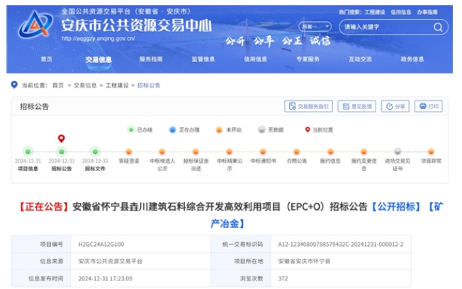 2024年12月31日,安徽省安慶市公共資源交易中心發(fā)布安徽省懷寧縣垚川建筑石料綜合開發(fā)高效利用項(xiàng)目(EPC+O)招標(biāo)公告,投標(biāo)截止時(shí)間為2025年1月21日。該項(xiàng)目建筑用砂巖礦、建筑石料用灰?guī)r礦生產(chǎn)規(guī)模360萬噸/年,建設(shè)期30個(gè)月(含設(shè)計(jì)周期),開采、加工及銷售期為15年。 合同估算價(jià)方面,項(xiàng)目工程費(fèi)用及勘察設(shè)計(jì)費(fèi)近4億元;礦山開采綜合單價(jià)15.28元/噸,砂石骨料加工綜合單價(jià)11.87元/噸,石英砂加工綜合單價(jià)43.72元/噸,冶金溶劑、高硅水泥配料綜合單價(jià)7.2元/噸。 根據(jù)公告,項(xiàng)目位于安徽省懷寧縣臘樹鎮(zhèn)境內(nèi),礦區(qū)面積0.8318平方公里,擁有建筑石料用灰?guī)r礦2684.93萬噸、建筑用砂巖礦2883.49萬噸;剝離物綜合利用資源量2092.61萬方。設(shè)計(jì)礦山采剝總量約680萬噸/年,其中建筑用砂巖礦、建筑石料用灰?guī)r礦360萬噸/年,年均剝離綜合利用磚瓦用粘土巖礦、水泥配料用砂巖礦以及其他剝離物320萬噸/年。 建設(shè)內(nèi)容 1、礦山基建工程內(nèi)容:(1)生產(chǎn)開拓與開采:主要包括礦山基建采準(zhǔn)、礦山開拓運(yùn)輸?shù)缆贰⒌V山穿孔設(shè)備、礦山鏟裝設(shè)備、礦山運(yùn)輸設(shè)備、礦山輔助設(shè)備等內(nèi)容;(2)綠色礦山建設(shè):主要包括資源綜合利用、礦山生態(tài)環(huán)境保護(hù)與修復(fù)、節(jié)能減排、智慧礦山、企業(yè)管理與企業(yè)形象等內(nèi)容;(3)礦山防洪排水;(4)邊坡監(jiān)測;(5)礦山剝離工程;(6)表土臨時(shí)堆場。 2、廠區(qū)建設(shè)部分:(1)新建骨料生產(chǎn)線、浮法玻璃用石英砂生產(chǎn)線與冶金料和高硅水泥配料生產(chǎn)線,包括破碎車間(骨料)、分車間、骨料儲存堆棚、壓濾車間、破碎車間(石英砂)、選礦車間、精砂脫水庫、細(xì)砂磁尾堆棚、原礦堆棚等冶金料和高硅水泥配料利用現(xiàn)有骨料生產(chǎn)線一段粗碎系統(tǒng)生產(chǎn);配套建設(shè)給排水系統(tǒng)、供配電系統(tǒng)(含供電專線)、水處理設(shè)施等輔助生產(chǎn)設(shè)施,并建設(shè)食堂、宿舍、辦公樓等生活設(shè)施;(2)礦山開拓及礦石內(nèi)部運(yùn)輸?shù)缆罚唬?)外部運(yùn)輸?shù)缆芳巴獠咳∷芫W(wǎng)。 3、礦山開采及砂石加工服務(wù)內(nèi)容:礦山開采及砂石加工服務(wù)內(nèi)容主要為年產(chǎn)360萬噸(具體以當(dāng)年實(shí)際下達(dá)的生產(chǎn)計(jì)劃為準(zhǔn))且滿足招標(biāo)人要求的成品機(jī)制砂石骨料產(chǎn)品,以及相配套的所有工作。礦山開采服務(wù)包括但不限于土方等剝離、穿孔爆破、二次破碎、鏟裝運(yùn)至粗破喂料口等;砂石加工服務(wù)包括但不限于礦產(chǎn)品生產(chǎn)加工,倉料打堆、成品裝車及相關(guān)環(huán)保工作等;另包括砂石開采加工中生產(chǎn)材料(包括但不限于人工、炸藥、燃油、耗材等),以及本次招標(biāo)范圍內(nèi)所有設(shè)備的更新及運(yùn)維(包括但不限于日常養(yǎng)護(hù)、定期養(yǎng)護(hù)、特別養(yǎng)護(hù)等)、廠區(qū)日常維護(hù)。采礦設(shè)備和生產(chǎn)工藝設(shè)備由投標(biāo)人自行配備。 招標(biāo)范圍 1、勘察設(shè)計(jì):包含但不限于承擔(dān)本建設(shè)項(xiàng)目招標(biāo)范圍內(nèi)測繪、勘察設(shè)計(jì)、施工圖設(shè)計(jì)、專家評審、圖審及后續(xù)服務(wù)(各項(xiàng)成果文件的評審、論證、報(bào)批報(bào)建)等全部設(shè)計(jì)工作。 2、施工總承包:承擔(dān)本建設(shè)項(xiàng)目的施工圖圖紙及設(shè)計(jì)變更范圍內(nèi)全部工程的施工;本項(xiàng)目相關(guān)全部設(shè)備及材料的采購安裝;直至竣工驗(yàn)收、調(diào)試及整體移交、質(zhì)量缺陷責(zé)任期內(nèi)的缺陷修復(fù)等相關(guān)工作;對工程項(xiàng)目進(jìn)行質(zhì)量、安全、進(jìn)度、費(fèi)用、合同、信息等管理和控制。 3、運(yùn)營及銷售:(1)礦山開采及砂石加工:礦山開采及砂石加工服務(wù)內(nèi)容主要為年產(chǎn)360萬噸(具體以當(dāng)年實(shí)際下達(dá)的生產(chǎn)計(jì)劃為準(zhǔn))且滿足招標(biāo)人要求的成品機(jī)制砂石骨料產(chǎn)品,以及相配套的所有工作。礦山開采服務(wù)包括但不限于土方等剝離、穿孔爆破、二次破碎、鏟裝運(yùn)至粗破喂料口等;砂石加工服務(wù)包括但不限于礦產(chǎn)品生產(chǎn)加工,倉料打堆、成品裝車及相關(guān)環(huán)保工作等;另包括砂石開采加工中生產(chǎn)材料(包括但不限于人工、炸藥、燃油、耗材等),以及本次招標(biāo)范圍內(nèi)所有設(shè)備的更新及運(yùn)維(包括但不限于日常養(yǎng)護(hù)、定期養(yǎng)護(hù)、特別養(yǎng)護(hù)等)、廠區(qū)日常維護(hù)。采礦設(shè)備和生產(chǎn)工藝設(shè)備由投標(biāo)人自行配備。 (2)產(chǎn)品銷售服務(wù):負(fù)責(zé)協(xié)助所開采加工產(chǎn)品銷售服務(wù)。應(yīng)制定科學(xué)合理可行的產(chǎn)品銷售方案,保持穩(wěn)定持久的銷售渠道,產(chǎn)品銷售量匹配可開采交付的礦石數(shù)量,原則上不低于360萬噸/年。