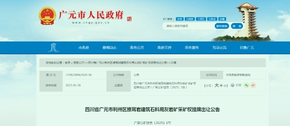 近日,四川省廣元市利州區(qū)擦耳巖建筑石料用灰?guī)r礦采礦權(quán)掛牌出讓?zhuān)V區(qū)查明建筑石料用灰?guī)r礦石資源量956.9萬(wàn)噸,擬設(shè)生產(chǎn)規(guī)模不低于65萬(wàn)噸/年,擬出讓年限不超過(guò)15.7年,拍賣(mài)起始價(jià)1312萬(wàn)元。 值得注意的是,本次掛牌出讓的礦權(quán)須交納競(jìng)買(mǎi)保證金人民幣貳佰陸拾叁萬(wàn)元整(¥2630000.00元),競(jìng)得人在簽訂《采礦權(quán)出讓合同》后6個(gè)月內(nèi),需向利州區(qū)人民政府一次性支付基礎(chǔ)設(shè)施損毀恢復(fù)及其他費(fèi)用1272萬(wàn)元。 四川省廣元市利州區(qū)擦耳巖建筑石料用灰?guī)r礦采礦權(quán) 掛牌出讓公告 根據(jù)《中華人民共和國(guó)礦產(chǎn)資源法》《自然資源部關(guān)于印發(fā)礦業(yè)權(quán)出讓交易規(guī)則的通知》(自然資規(guī)〔2023〕1號(hào))《自然資源部關(guān)于深化礦產(chǎn)資源管理改革若干事項(xiàng)的意見(jiàn)》(自然資規(guī)〔2023〕6號(hào))等有關(guān)法律法規(guī)的規(guī)定,受廣元市自然資源局委托,廣元市政務(wù)服務(wù)和公共資源交易中心以掛牌方式組織實(shí)施四川省廣元市利州區(qū)擦耳巖建筑石料用灰?guī)r礦采礦權(quán)掛牌出讓工作,現(xiàn)將有關(guān)事項(xiàng)公告如下。 一、出讓人 名稱(chēng):廣元市自然資源局 場(chǎng)所:廣元市利州區(qū)利州東路739號(hào) 二、礦業(yè)權(quán)交易平臺(tái) 名稱(chēng):廣元市政務(wù)服務(wù)和公共資源交易中心 場(chǎng)所:廣元市利州區(qū)玉潭路50號(hào)市政務(wù)服務(wù)和公共資源交易中心C區(qū)三樓 三、出讓采礦權(quán)基本情況 項(xiàng)目名稱(chēng):四川省廣元市利州區(qū)擦耳巖建筑石料用灰?guī)r礦 開(kāi)采礦種:建筑石料用灰?guī)r 地理位置:廣元市利州區(qū)雪峰街道金山村 面積:0.09平方千米,拐點(diǎn)坐標(biāo)如下(2000國(guó)家大地坐標(biāo)): 開(kāi)采標(biāo)高:+1267米至+1118米 勘查工作程度:勘探 資源儲(chǔ)量:查明建筑石料用灰?guī)r礦石資源量956.9萬(wàn)噸。 擬設(shè)生產(chǎn)規(guī)模:不低于65萬(wàn)噸/年。 擬出讓年限:不超過(guò)15.7年(含基建期1年,具體按評(píng)審?fù)ㄟ^(guò)的《礦產(chǎn)資源開(kāi)發(fā)利用方案》確定)。 資源開(kāi)發(fā)利用情況:空白區(qū)新設(shè)采礦權(quán),未動(dòng)用。 礦山地質(zhì)環(huán)境保護(hù)與土地復(fù)墾要求:按要求編制《礦山地質(zhì)環(huán)境保護(hù)與土地復(fù)墾方案》通過(guò)專(zhuān)家評(píng)審,開(kāi)采過(guò)程中嚴(yán)格按照通過(guò)的《礦山地質(zhì)環(huán)境保護(hù)與土地復(fù)墾方案》組織實(shí)施。 起始價(jià):人民幣壹仟叁佰壹拾貳萬(wàn)元整(小寫(xiě):¥13120000.00元) 四、競(jìng)買(mǎi)人的資格條件 1.在中華人民共和國(guó)境內(nèi)注冊(cè)且具有獨(dú)立承擔(dān)民事責(zé)任的企業(yè)法人。 2.未被列入全國(guó)礦業(yè)權(quán)人勘查開(kāi)采信息公示系統(tǒng)中的“嚴(yán)重違法名單”;未被“信用中國(guó)”網(wǎng)站列入“失信懲戒對(duì)象”“安全生產(chǎn)領(lǐng)域失信生產(chǎn)經(jīng)營(yíng)單位”;未被“國(guó)家企業(yè)信用信息公示系統(tǒng)”列入“經(jīng)營(yíng)異常名錄”“嚴(yán)重違法失信企業(yè)名單”。 3.法律、行政法規(guī)規(guī)定的其他條件。 4.本次出讓不接受聯(lián)合體申請(qǐng)。 五、出讓方式及交易的時(shí)間、地點(diǎn) 出讓方式:掛牌 掛牌時(shí)間:2025年2月12日9時(shí)至2025年2月26日10時(shí) 地點(diǎn):廣元市利州區(qū)玉潭路50號(hào)市政務(wù)服務(wù)和公共資源交易中心C區(qū)三樓 六、獲取掛牌文件的途徑和申請(qǐng)報(bào)名的起止時(shí)間及方式 獲取出讓文件的途徑:競(jìng)買(mǎi)申請(qǐng)人須于2025年2月10日23時(shí)59分前通過(guò)賬號(hào)密碼或CA登錄全國(guó)公共資源交易平臺(tái)(四川省·廣元市)(http://www.gyggzyjy.cn/)電子交易平臺(tái)免費(fèi)下載出讓文件。CA數(shù)字證書(shū)辦理方式詳見(jiàn)全國(guó)公共資源交易平臺(tái)(四川省·廣元市)辦事指南(咨詢(xún)電話:0839-5572552)。 申請(qǐng)報(bào)名方式:本次掛牌出讓實(shí)行網(wǎng)上提交報(bào)名資料(不接受紙質(zhì)資料),報(bào)名資料須加蓋競(jìng)買(mǎi)申請(qǐng)人公章。競(jìng)買(mǎi)申請(qǐng)人須于2025年2月11日上午12:00前登錄全國(guó)公共資源交易平臺(tái)(四川省·廣元市)(http://www.gyggzyjy.cn/)提交報(bào)名資料,逾期提交報(bào)名資料的系統(tǒng)不予接受。申請(qǐng)人提交的報(bào)名資料必須真實(shí)、合法、有效,如申請(qǐng)人提交虛假報(bào)名資料將承擔(dān)法律責(zé)任(咨詢(xún)電話:0839-5572009)。 競(jìng)買(mǎi)保證金交納:本次掛牌出讓須交納競(jìng)買(mǎi)保證金人民幣貳佰陸拾叁萬(wàn)元整(¥2630000.00元)。申請(qǐng)人須于北京時(shí)間2025年2月11日上午10:00前通過(guò)申請(qǐng)人的賬戶(hù)以銀行轉(zhuǎn)賬、電匯、網(wǎng)上銀行轉(zhuǎn)賬方式足額交納競(jìng)買(mǎi)保證金,競(jìng)買(mǎi)保證金到達(dá)指定賬戶(hù)的時(shí)間以銀行到賬時(shí)間為準(zhǔn)。競(jìng)買(mǎi)保證金交納信息須登錄全國(guó)公共資源交易平臺(tái)(四川省·廣元市)—電子交易平臺(tái),從土地(礦權(quán))