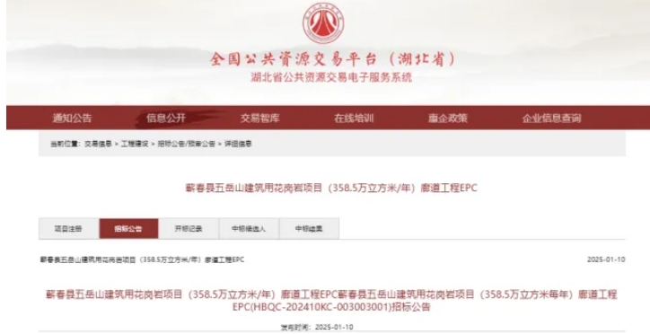 日前,湖北省公共資源交易平臺發(fā)布蘄春縣五岳山950萬噸/年建筑用花崗巖項目廊道工程EPC招標公告。此次招標合同估算價約3.89億元,計劃工期325日歷天,主線廊道設(shè)計輸送能力為2000萬噸/年。 據(jù)悉,該項目礦區(qū)位于湖北省黃岡市蘄春縣彭思鎮(zhèn)丁港村、五岳村,礦山資源儲量超1.13億噸,開采規(guī)模950萬噸/年(358.5萬方/年),出讓年限為12.46年。2024年3月底,湖北省航投綠色建筑材料有限公司以約1.85億元競得該礦采礦權(quán)。 據(jù)招標文件公示,該項目建設(shè)起點為彭思鎮(zhèn)東側(cè)的五岳礦區(qū),終點為蘄春港茅山港區(qū)茅山作業(yè)區(qū)陸域。 廊道工程用于將礦山開采加工的砂石骨料由生產(chǎn)線運輸至廊道終點堆場,建設(shè)約10.434km的長皮帶機運輸廊道以及生產(chǎn)輔助建構(gòu)筑物、供電照明、給排水、消防、環(huán)保等配套設(shè)施,建構(gòu)筑物總建筑面積約70000平方米。 本工程廊道需跨越G50(滬渝高速)、G347(巴蘄線)、S404(橫茅線)、彭余公路四條交通道路,主要采用架空廊道,結(jié)構(gòu)為鋼桁架、鋼支腿、多柱獨立基礎(chǔ)等,其中最大跨徑約75m。 此次招標范圍: 1、包括(但不限于)蘄春縣五岳山建筑用花崗巖項目廊道工程可行性研究報告內(nèi)的所有內(nèi)容(不含10kV及以上供配電工程)。 2、包括但不限于招標項目工程的詳勘(補勘)、初步設(shè)計、施工圖設(shè)計、設(shè)備的購置、安裝、調(diào)試、材料采購、建筑工程和安裝工程施工直至所有承包范圍竣工驗收合格、取得項目竣工驗收備案證及整體移交。 3、招標人要求的其它工作等所有內(nèi)容和雖招標人沒有特別說明但在工程可行性研究報告中有所說明或圖紙中有所規(guī)定或為實現(xiàn)合同目的所合理包含的一切內(nèi)容與項目(不含10kV及以上供配電工程),并對承包項目的質(zhì)量、安全、文明施工、工期(進度)、造價、費用等全面管控和負責。 此次招標接受聯(lián)合體投標。工程計劃工期為325日歷天,其中:勘察設(shè)計工期30日歷天,土建及安裝工期255日歷天,單機試車及聯(lián)動試車工期20日歷天,試生產(chǎn)工期20日歷天。計劃開工日期為2025年2月9日。