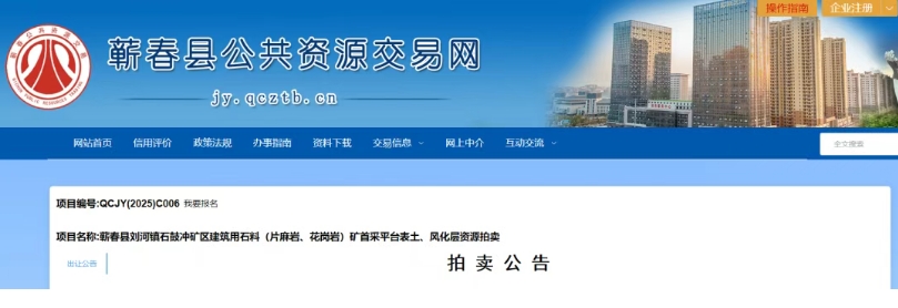 近日,湖北省黃岡市蘄春縣劉河鎮(zhèn)石鼓沖礦區(qū)建筑用石料(片麻巖、花崗巖)礦首采平臺表土、風(fēng)化層資源定于2025年1月20日(星期一)上午10時30分整在蘄春縣公共資源交易中心拍賣。數(shù)量約1924.6萬噸,參考價約2502萬元(參考單價約1.3元每噸)。 據(jù)了解,2024年12月31日上午,中國電建華中區(qū)域總部/華中投資公司蘄春石鼓沖綠色建材基地項目舉行投產(chǎn)試運行啟動儀式,計劃2025年6月30日實現(xiàn)全面投產(chǎn)。該項目位于湖北省黃岡市蘄春縣,總投資超140億元,由礦山開采工程、砂石加工系統(tǒng)工程、長距離運輸廊道工程、碼頭工程四部分組成。礦區(qū)主要儲有片麻巖、花崗巖,可開采儲量約12.5億噸,設(shè)計開采規(guī)模為7000萬噸/年,生產(chǎn)運營期限20年。 展示時間:2025年1月11日至2025年1月19日在標地物所在地現(xiàn)場展示并接受咨詢。從即日起本公司提供標的的查勘條件。 有意參加競買的單位請攜帶拍賣文件中的競買人條件要求,于2025年1月17日之前交納 1251萬元的競買保證金和 11 萬元的競買準備金,憑有效證件辦理競買登記手續(xù)。競買保證金和競買準備金須在2025年1月17日16:00前到達拍賣人指定的銀行帳戶內(nèi)(以到賬時間為準),本公司自公告之日展示標的并接受咨詢。 聯(lián)系人:劉女士 18972721927