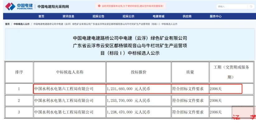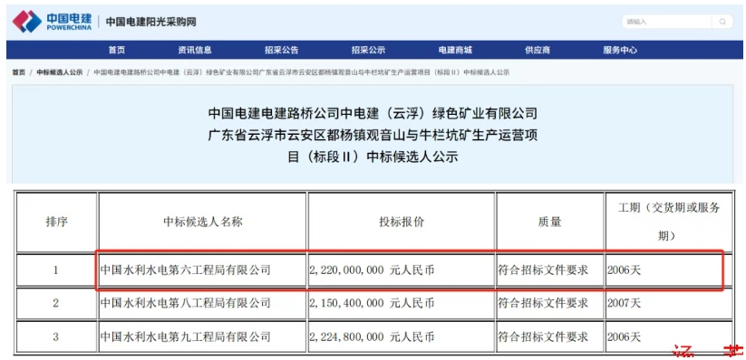 近日,中電建(云浮)綠色礦業(yè)有限公司廣東省云浮市云安區(qū)都楊鎮(zhèn)觀音山與牛欄坑礦生產運營項目公布中標候選人。項目共分為2個標段(標段Ⅰ、標段Ⅱ)進行招標,水電六局皆為第一候選人,總報價超34.52億元。 據了解,云浮項目包括觀音山和牛欄坑兩個礦區(qū),礦種均為建筑用花崗巖,兩礦區(qū)相鄰300m,礦區(qū)距云浮市約21km。礦區(qū)至云安區(qū)西江碼頭直距約3-5km,交通條件便利。兩礦區(qū)總投資超百億元,設計可開采總量3.76億立方米(約12.4億噸),礦山總服務年限20年。其中:觀音山礦區(qū)開采規(guī)模3500萬噸/年,牛欄坑礦區(qū)開采規(guī)模2300萬噸/年,兩礦區(qū)設計產能規(guī)模達6500萬噸/年。 此次招標范圍包括兩礦區(qū)原料開采及生產加工系統(tǒng)運營與碼頭發(fā)運。項目計劃服務周期截止時間為2030年6月30日;起始時間以觀音山礦預計投產時間起算,其中觀音山礦已于2024年投產,牛欄坑礦預計2025年12月31日投產。計劃服務周期內預計產量為2.4億噸。 具體信息 該項目生產加工系統(tǒng)包含建筑骨料加工系統(tǒng)和風化料加工系統(tǒng)。建筑骨料加工系統(tǒng)設計生產規(guī)模6000萬噸/年,處理能力14000噸/小時;風化料加工系統(tǒng)規(guī)模按500萬噸/年考慮,處理觀音山礦區(qū)風化料,其余部分風化礦外售給周邊石場,或者收購周邊現有石場進行生產與排土,同時預留二期擴建場地。現有風化料加工系統(tǒng)處理能力按照1200噸/小時設計。 外運碼頭設計發(fā)運能力7050萬噸/年,共分兩期建設,其中一期5個泊位,碼頭岸線長500米,設計發(fā)運能力2500萬噸/年;二期10個泊位,碼頭岸線長1000米,設計發(fā)運能力4550萬噸/年。 兩礦區(qū)原料開采及生產加工系統(tǒng)運營與碼頭發(fā)運招標范圍 標段Ⅰ:原料開采工作范圍與主要內容包括但不限于:開采范圍內的覆蓋層剝離,鏟裝、運輸至排土場或周邊廢舊礦坑;全強風化、中風化、微未風化巖石的開采,分類分級鏟裝、運輸、卸料至技術要求明確的溜井平臺或者相應位置卸料口、高邊坡監(jiān)測、標段運營期內所需的監(jiān)控量測等全部內容,以及為完成標段工作內容所需的全部附屬工作。 標段Ⅱ:生產加工系統(tǒng)運營與碼頭發(fā)運(不含專用輸電變電站的維護)工作范圍與主要內容包括但不限于:生產加工、建筑骨料加工系統(tǒng)、風化料加工系統(tǒng)、碼頭發(fā)運系統(tǒng)與廠礦區(qū)生產生活設施的運營、維護、管理等內容;包括系統(tǒng)生產設備、設施、包括配電室的運營維護與管理;除設備正常大修外招標人提供的生產設備的中、小修、日常維修保養(yǎng);廊道與膠帶運輸系統(tǒng)運營維護。半成品與成品加工區(qū)、陸域堆場位置氣膜倉運營維護,包含本標段運行維護過程所需的監(jiān)控、量測,以及非原料開采質量不符合要求引起的堵井與疏通等相關工作;不含招標人提供的專用110kV+35kV變電站與輸電線路的運營維護;生產加工、碼頭發(fā)運、礦山、碼頭智慧管控系統(tǒng)的整體運營、維護,以及生產加工系統(tǒng),碼頭發(fā)運系統(tǒng)設備的運行監(jiān)測,以及為完成標段工作內容所需的全部監(jiān)控量測等附屬工作。