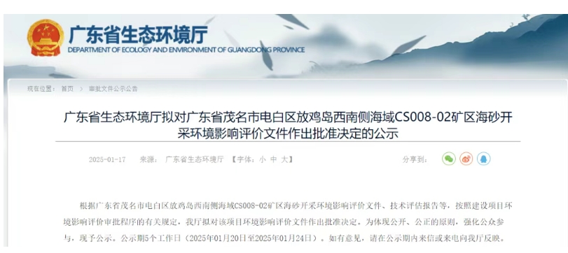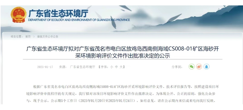 近日,廣東省生態(tài)環(huán)境廳擬對(duì)廣東省茂名市電白區(qū)放雞島西南側(cè)海域CS008-01、CS008-02礦區(qū)海砂開采環(huán)境影響評(píng)價(jià)文件作出批準(zhǔn)決定的公示。根據(jù)報(bào)告顯示,兩宗海砂礦權(quán)最大資源可開采量5216.97萬(wàn)方,年產(chǎn)1921萬(wàn)方,詳情如下: CS008-01礦區(qū),最大資源可開采原礦礦石量為2322.31萬(wàn)m³,年均最大開采量854萬(wàn)m³,預(yù)計(jì)開采年限2.72年。 CS008-02礦區(qū),最大資源可開采原礦礦石量為2894.66萬(wàn)m³,年均最大開采量1067萬(wàn)m³,預(yù)計(jì)開采年限2.71年。 項(xiàng)目開采范圍用海面積為191.9801公頃,不占用岸線與灘涂。項(xiàng)目設(shè)計(jì)日最大開采量6.48萬(wàn)m³、年均最大開采量854萬(wàn)m³,設(shè)計(jì)最大資源可開采原礦礦石量為2322.31萬(wàn)m³,預(yù)計(jì)開采年限2.72年。 項(xiàng)目為水下開采,采用4艘采砂能力為900m³/h的射流抽吸式采砂船、8艘4000m³皮帶運(yùn)砂船進(jìn)行作業(yè),礦區(qū)存在兩個(gè)礦體,先開采V1礦體,后開采V2礦體。 茂名海域CS008-01海砂開采區(qū)塊地理位置圖 項(xiàng)目開采范圍用海面積為224.8184公頃,不占用岸線與灘涂。項(xiàng)目設(shè)計(jì)日最大開采量8.1萬(wàn)m³、年均最大開采量1067萬(wàn)m³,設(shè)計(jì)最大資源可開采原礦礦石量為2894.66萬(wàn)m³,預(yù)計(jì)開采年限2.71年。 項(xiàng)目為水下開采,采用5艘采砂能力為900m³/h的射流抽吸式采砂船、10艘4000m³皮帶運(yùn)砂船進(jìn)行作業(yè),礦區(qū)存在三個(gè)礦體,開采順序依次是V1礦體、V2礦體、V3礦體。 茂名海域CS008-02海砂開采區(qū)地理位置圖 公示期5個(gè)工作日(2025年01月20日至2025年01月24日)。如有意見,請(qǐng)?jiān)诠酒趦?nèi)來(lái)信或來(lái)電向我廳反映。 聯(lián)系地址:廣州市天河區(qū)龍口西路213號(hào)廣東省生態(tài)環(huán)境廳政務(wù)服務(wù)窗口,郵編:510630 聯(lián)系電話:020-83624746,020-83629853 傳真:020-87532166