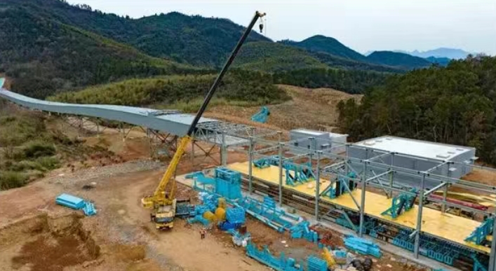 近日,位于安徽省池州市青陽(yáng)縣木鎮(zhèn)鎮(zhèn)的安徽寶鎂礦產(chǎn)品輸送廊道工程項(xiàng)目現(xiàn)場(chǎng),塔吊有序擺動(dòng),每一個(gè)環(huán)節(jié)都在有條不紊地進(jìn)行中,確保施工過(guò)程中的安全穩(wěn)定。據(jù)了解,該廊道工程線路總長(zhǎng)約22.97千米(近23千米),經(jīng)過(guò)2024年的奮戰(zhàn),春節(jié)前整個(gè)廊道工程的通廊鋼結(jié)構(gòu)已全線貫通,5個(gè)轉(zhuǎn)運(yùn)站設(shè)備安裝已完成,通廊皮帶支架安裝已完成95%。 中交隧道工程局有限公司安徽寶鎂廊道工程項(xiàng)目經(jīng)理劉博說(shuō):“新春佳節(jié)以后,項(xiàng)目管理人員以及工人力爭(zhēng)早進(jìn)場(chǎng)、早開(kāi)工,早日形成生產(chǎn)高潮,已于2025年2月6日全面復(fù)工,確保按計(jì)劃3月實(shí)現(xiàn)單機(jī)試運(yùn)營(yíng),4月實(shí)現(xiàn)聯(lián)機(jī)試運(yùn)營(yíng)的目標(biāo)。” 據(jù)了解,安徽寶鎂項(xiàng)目投資總額為148億元,是目前池州產(chǎn)業(yè)項(xiàng)目“一號(hào)工程”。項(xiàng)目主體位于青陽(yáng)縣酉華鎮(zhèn)花園吳家白云巖礦區(qū)。總礦石量約13.2億噸,其中冶鎂用白云巖、熔劑用白云巖、熔劑用石灰?guī)r礦資源量總計(jì)12.7億噸,建筑石料用灰?guī)r礦、建筑用白云巖礦資源量總計(jì)4947.98萬(wàn)噸,設(shè)計(jì)開(kāi)采規(guī)模4000萬(wàn)噸/年,出讓年限30年。2021年12月24日,安徽寶鎂以42.27億元競(jìng)得項(xiàng)目礦權(quán)。 2021年12月28日,該項(xiàng)目奠基開(kāi)工;2022年6月28日主廠區(qū)啟動(dòng)建設(shè),同年12月28日廊道控制性工程(隧道)暨礦山一期工程啟動(dòng)建設(shè)。 一期項(xiàng)目建設(shè)規(guī)模為新建年產(chǎn)30萬(wàn)噸高性能鎂基輕合金生產(chǎn)線,配套實(shí)施年產(chǎn)4000萬(wàn)噸花園吳家白云巖礦山開(kāi)采和礦石加工工程,建設(shè)物流園區(qū)及年產(chǎn)3500萬(wàn)噸機(jī)制砂、骨料生產(chǎn)線,建設(shè)約23公里礦石運(yùn)輸廊道,收購(gòu)及擴(kuò)建年吞吐量4000萬(wàn)噸童埠港碼頭,擴(kuò)建新河鎮(zhèn)站鐵路專線以及同時(shí)建設(shè)110KV變電站及相關(guān)公輔配套設(shè)施。 2024年12月26日,礦產(chǎn)品輸送廊道項(xiàng)目鋼結(jié)構(gòu)全線貫通、童埠段單機(jī)調(diào)試成功,標(biāo)志著安徽寶鎂輕合金項(xiàng)目取得重要進(jìn)展,為2025年上半年廊道項(xiàng)目實(shí)現(xiàn)全面建成投產(chǎn)奠定堅(jiān)實(shí)基礎(chǔ)。