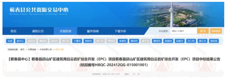 湖北省蘄春縣公共資源交易中心發(fā)布蘄春縣邱山礦區(qū)建筑用白云巖礦綜合開(kāi)發(fā)(EPC)項(xiàng)目中標(biāo)結(jié)果公告。中圖設(shè)計(jì)有限公司、蘄春城一建設(shè)有限公司以超2.44億元中標(biāo)該項(xiàng)目,項(xiàng)目計(jì)劃工期730日歷天。