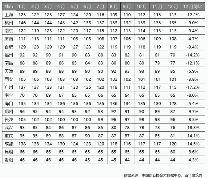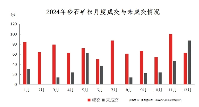 中國砂石行業(yè)運行報告 中國砂石協(xié)會 2024年中國砂石行業(yè)綜述 2024年我國經(jīng)濟(jì)運行總體平穩(wěn)、穩(wěn)中有進(jìn),高質(zhì)量發(fā)展取得新進(jìn)展。砂石行業(yè)在基礎(chǔ)設(shè)施投資增速放緩、房地產(chǎn)開發(fā)投資持續(xù)下降的影響下,產(chǎn)量、價格持續(xù)下降。 供需方面:2024年,全國砂石產(chǎn)量152億噸,同比下降9.4%。供給端:整體來看,目前我國砂石市場供給充足,呈供大于求狀態(tài)。需求端:基礎(chǔ)設(shè)施投資比上年增長4.4%,增速較2023年有所放緩,房地產(chǎn)開發(fā)投資比上年下降10.6%,砂石總體需求下降。 價格方面:價格整體呈下降趨勢。2024年12月,全國砂石綜合均價為94元/噸,較2023年12月下降10.8%,其中,12月份機(jī)制砂均價82元/噸、天然砂均價119元/噸、碎石均價80元/噸,沿江城市砂石均價96元/噸、沿海城市砂石均價93元/噸。 新設(shè)礦權(quán)(已成交)方面:全國新設(shè)844宗砂石礦權(quán),其中新疆、貴州新設(shè)砂石礦權(quán)數(shù)量居全國前兩位,分別為202宗、106宗;建筑用砂、建筑石料用灰?guī)r兩類礦種礦權(quán)數(shù)量最多;需要關(guān)注的是,砂石礦權(quán)流拍現(xiàn)象較去年增多。 新設(shè)砂石礦權(quán)出讓成交價方面:海南新設(shè)砂石采礦權(quán)出讓成交均價為22.8元/噸,價格居全國首位,而甘肅、云南、遼寧、吉林、貴州新設(shè)砂石采礦權(quán)出讓成交均價在1元/噸以內(nèi)。 砂石企業(yè)運行方面:我國砂石企業(yè)產(chǎn)能利用率和開機(jī)率整體低于去年。12月份產(chǎn)能利用率、開機(jī)率分別為37%、60%,重點砂石企業(yè)日均出貨量為251萬噸/日。 2024年砂石行業(yè)運行情況 1.產(chǎn)量下降 2024年,全國砂石產(chǎn)量152億噸,同比下降9.4%。房地產(chǎn)市場仍處于筑底階段,開發(fā)投資持續(xù)下行,基建投資增速放緩,砂石有效需求不足,產(chǎn)量持續(xù)下降。 2.價格呈下降趨勢 2024年整體來看,我國砂石需求恢復(fù)乏力,價格持續(xù)下降。全國砂石供應(yīng)充足,庫存高企,價格走勢主要取決于需求端,而需求端整體偏弱,僅11月份重點項目趕工拉動需求小幅回升,帶動砂石價格小幅上漲,其他月份砂石價格均呈下降趨勢。 據(jù)中國砂石協(xié)會大數(shù)據(jù)中心統(tǒng)計,2024年12月,我國砂石綜合均價為94元/噸,同比下降10.8%。 2024年12月,我國機(jī)制砂均價82元/噸,同比下降13.2%;天然砂均價119元/噸,同比下降9.3%。 2024年12月,建設(shè)用碎石均價80元/噸,同比下降10.5%。 沿江、沿海城市砂石價格也整體呈下滑趨勢。12月份,沿江、沿海城市砂石均價分別為96元/噸、93元/噸,同比降幅分別為12.8%、11.7%。 2024年中國重點城市砂石行情月度變化表(元/噸) 2024年12月,全國19個重點城市砂石市場價格同比均出現(xiàn)下降,其中武漢、廣州、成都、福州、南昌和重慶、上海降幅均在10%以上。 3.新設(shè)礦權(quán)(已成交) 2024年,全國新設(shè)砂石礦權(quán)數(shù)量844宗,其中新疆、貴州新設(shè)砂石礦權(quán)數(shù)量居全國前兩位,分別為202宗、106宗;云南、黑龍江、湖南新設(shè)砂石礦權(quán)數(shù)量為50~100宗;甘肅、四川、廣西、內(nèi)蒙古、湖北、廣東、吉林新設(shè)砂石礦權(quán)數(shù)量為20~40宗;重慶、遼寧、江西、青海、浙江、山東、西藏新設(shè)砂石礦權(quán)數(shù)量為10~20宗;安徽、山西、陜西、寧夏、福建、海南、河南、江蘇新設(shè)砂石礦權(quán)數(shù)量均在10宗以內(nèi)。 砂石礦權(quán)總體投放過多,遠(yuǎn)超市場需求,砂石企業(yè)礦權(quán)競拍更加理性,砂石礦權(quán)流拍現(xiàn)象頻現(xiàn)。2024年,我國出讓砂石礦權(quán)1206宗,未成交362宗,近三成砂石礦權(quán)流拍、終止或中止。 全國新設(shè)砂石礦權(quán)中,建筑石料用灰?guī)r、建筑用砂兩類礦種新設(shè)礦權(quán)數(shù)量最多,分別為286宗、277宗;建筑用花崗巖、建筑用砂巖、建筑用玄武巖、建筑用白云巖、建筑用石料(凝灰?guī)r)、建筑用安山巖新設(shè)礦權(quán)數(shù)量為10~80宗;建筑用閃長巖、建筑用輝綠巖、建筑用大理巖新設(shè)礦權(quán)數(shù)量在10宗以內(nèi);另外,新設(shè)砂巖礦、石灰?guī)r礦、玄武巖礦、白云巖礦、片麻巖礦、安山巖礦、花崗巖礦、大理巖礦、輝綠巖礦、閃長巖礦共46宗。 新設(shè)砂石礦權(quán)中,資源儲量小于100萬噸的礦權(quán)占全部新設(shè)砂石礦權(quán)的8%,較2023年下降2.1個百分點;100萬~500萬噸砂石礦權(quán)占比為32%,較2023年提高6.3個百分點;500萬~1000萬噸的砂石礦權(quán)占比為21%,較2023年上升0.4個百分點;資源儲量大于1000萬噸的砂石礦權(quán)占比為39%,較2023年下降4.6個百分點。 2024年新設(shè)砂石礦權(quán)礦區(qū)面積情況 從新設(shè)砂石礦權(quán)礦區(qū)面積來看,礦區(qū)面積0.1~1平方公里砂石礦權(quán)數(shù)量占新設(shè)砂石礦權(quán)66%,是新設(shè)礦權(quán)的主流。新設(shè)砂石礦權(quán)中,礦區(qū)面積小于0.1平方公里的有265宗,占比為31%,占比較2023年上升6個百分點;礦區(qū)面積在0.1~1平方公里的新設(shè)砂石礦權(quán)有557宗,占比最高,為66%;礦區(qū)面積在1~10平方公里的新設(shè)砂石礦權(quán)22宗,占比為3%。 新設(shè)礦權(quán)出讓成交均價方面,由于各地政府對砂石礦權(quán)出讓的調(diào)控力度和競買人參