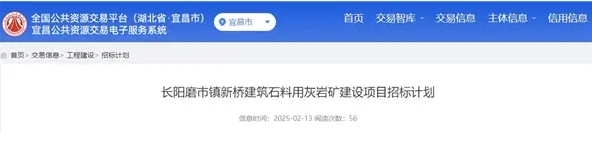 2月13日,湖北省宜昌公共資源交易電子服務(wù)系統(tǒng)發(fā)布長(zhǎng)陽(yáng)磨市鎮(zhèn)新橋建筑石料用灰?guī)r礦建設(shè)項(xiàng)目招標(biāo)計(jì)劃,招標(biāo)時(shí)間為2025年3月。該項(xiàng)目估算投資7.2億,建設(shè)年產(chǎn)500萬(wàn)噸建筑石料用灰?guī)r礦綠色礦山。