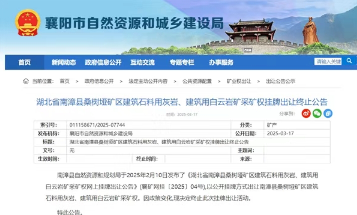 近日,湖北省南漳縣桑樹(shù)埡礦區(qū)建筑石料用灰?guī)r、建筑用白云巖礦采礦權(quán),因政策變化,已終止出讓。該礦保有資源量約3.17億噸,生產(chǎn)規(guī)模500萬(wàn)噸/年,掛牌起始價(jià)為2.38億元。礦山服務(wù)年限60.2年,掛牌出讓年限30年,含基建期1年,采礦權(quán)期限屆滿(mǎn),登記的開(kāi)采區(qū)域內(nèi)仍有可供開(kāi)采的礦產(chǎn)資源的,可以依法依規(guī)申請(qǐng)續(xù)期。