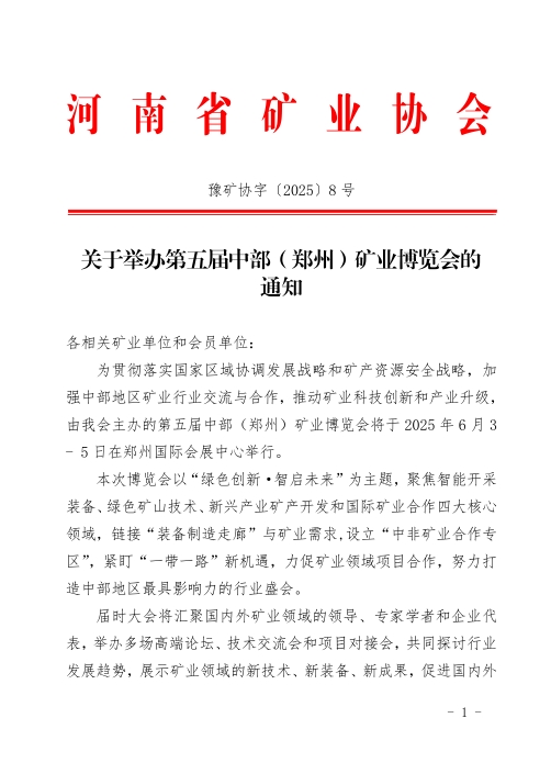 關(guān)于舉辦第五屆中部(鄭州)礦業(yè)博覽會的通知