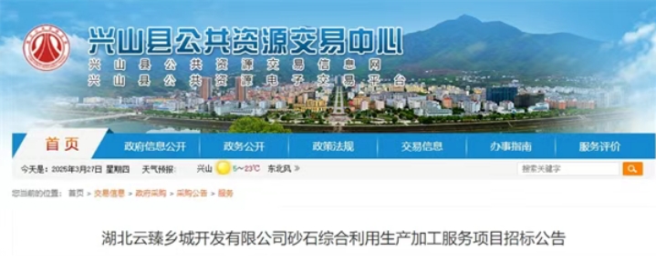 日前,湖北宜昌興山公共資源交易中心發(fā)布湖北云臻鄉(xiāng)城開發(fā)有限公司砂石綜合利用生產(chǎn)加工服務(wù)項目招標(biāo)公告。該項目預(yù)算單價14.95元/噸,不接受聯(lián)合體投標(biāo)及進(jìn)口產(chǎn)品,專門面向中小微企業(yè)招標(biāo)。 投標(biāo)文件提交截止時間:2025年4月8日;招標(biāo)人電話:15997589123。 據(jù)悉,招標(biāo)企業(yè)湖北云臻鄉(xiāng)城開發(fā)有限公司成立于2017年3月31日,法所屬行業(yè)為非金屬礦采選業(yè),經(jīng)營范圍包含非煤礦山礦產(chǎn)資源開采、河道采砂、建設(shè)工程施工、港口經(jīng)營、房地產(chǎn)開發(fā)經(jīng)營、建筑勞務(wù)分包等。