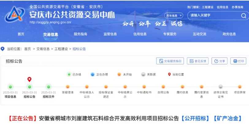 近日,安徽桐城市同遠(yuǎn)資源開(kāi)發(fā)有限公司發(fā)布桐城市劉崖建筑石料綜合開(kāi)發(fā)高效利用項(xiàng)目招標(biāo)公告。2023年3月22日,桐城市同遠(yuǎn)礦產(chǎn)資源開(kāi)發(fā)有限公司以8.42億元成功競(jìng)得該礦權(quán)。 本項(xiàng)目位于安徽省桐城市青草鎮(zhèn)及范崗鎮(zhèn)境內(nèi),主要建設(shè)內(nèi)容為范崗鎮(zhèn)童鋪村劉崖建筑石料加工區(qū)建設(shè)、Y100朝陽(yáng)庵至童鋪段公路建設(shè)工程及配套劉崖礦區(qū)開(kāi)采加工及運(yùn)營(yíng)。該項(xiàng)目可采資源量10073.31萬(wàn)噸,年開(kāi)采加工建筑砂石骨料500萬(wàn)噸,建設(shè)期為2年。本項(xiàng)目接受聯(lián)合體投標(biāo),聯(lián)合體成員數(shù)量不超過(guò)4家。 最高投標(biāo)限價(jià): 勘察設(shè)計(jì)費(fèi)用最高報(bào)價(jià):860萬(wàn)元(含各項(xiàng)專題,不含Y100朝陽(yáng)庵至童鋪段公路設(shè)計(jì))。 工程費(fèi)用最高費(fèi)率報(bào)價(jià):初步設(shè)計(jì)中工程費(fèi)用的90%(初步設(shè)計(jì)中工程費(fèi)用概算為36817.98萬(wàn)元)。 本招標(biāo)項(xiàng)目已獲批準(zhǔn)建設(shè),招標(biāo)人為桐城市同遠(yuǎn)資源開(kāi)發(fā)有限公司。建設(shè)資金來(lái)自企業(yè)自籌,出資比例為100%。項(xiàng)目已具備招標(biāo)條件,現(xiàn)對(duì)該項(xiàng)目進(jìn)行公開(kāi)招標(biāo)。 本項(xiàng)目位于安徽省桐城市青草鎮(zhèn)及范崗鎮(zhèn)境內(nèi),主要建設(shè)內(nèi)容為范崗鎮(zhèn)童鋪村劉崖建筑石料加工區(qū)建設(shè)、Y100朝陽(yáng)庵至童鋪段公路建設(shè)工程及配套劉崖礦區(qū)開(kāi)采加工及運(yùn)營(yíng)。其中礦區(qū)開(kāi)采礦種為建筑用花崗巖,礦區(qū)面積為0.4161平方千米,開(kāi)采標(biāo)高+481.8米至+241米,可采資源量10073.31萬(wàn)噸,開(kāi)采方式為露天開(kāi)采,本項(xiàng)目建設(shè)砂石骨料生產(chǎn)設(shè)施及相關(guān)配套基礎(chǔ)設(shè)施等。年開(kāi)采加工能力為年產(chǎn)建筑砂石骨料500萬(wàn)噸。 最高投標(biāo)限價(jià): (1)勘察設(shè)計(jì)費(fèi)用最高報(bào)價(jià):860萬(wàn)元(含各項(xiàng)專題,不含Y100朝陽(yáng)庵至童鋪段公路設(shè)計(jì))。 (2)工程費(fèi)用最高費(fèi)率報(bào)價(jià):初步設(shè)計(jì)中工程費(fèi)用的90%(初步設(shè)計(jì)中工程費(fèi)用概算為36817.98萬(wàn)元)。 (3)礦山開(kāi)采及砂石加工綜合單價(jià):26.5元/噸(開(kāi)采費(fèi)用比例不得高于45%)。 注: 1)工程費(fèi)用包括:劉崖建筑石料加工區(qū)工程費(fèi)用(不含初步設(shè)計(jì)中砂石骨料工廠的生產(chǎn)設(shè)備及安裝費(fèi)用、智慧礦山費(fèi)用)、外部運(yùn)輸?shù)缆罚╕100朝陽(yáng)庵至童鋪段公路建設(shè)工程)等工程施工費(fèi)用。(詳見(jiàn)Y100朝陽(yáng)庵至童鋪段公路和加工區(qū)初步設(shè)計(jì))2)礦山開(kāi)采及砂石加工綜合單價(jià)包括:與礦山開(kāi)采及砂石加工所有的生產(chǎn)及相關(guān)費(fèi)用(包括但不限于礦山生產(chǎn)開(kāi)拓與開(kāi)采工程施工費(fèi)用、內(nèi)部開(kāi)拓運(yùn)輸?shù)缆沸藿ā⒌V山基建工程費(fèi)用、綠色礦山創(chuàng)建、智慧礦山、生態(tài)修復(fù)、防洪排水、邊坡監(jiān)測(cè)、安全生產(chǎn)費(fèi)用、生產(chǎn)運(yùn)營(yíng)費(fèi)用等)和本次招標(biāo)范圍內(nèi)的所有設(shè)備、工程的更新、運(yùn)維費(fèi)。3)開(kāi)采及加工設(shè)備采購(gòu)部分:負(fù)責(zé)采購(gòu)滿足產(chǎn)能及質(zhì)量要求的所有與生產(chǎn)有關(guān)的設(shè)備,此部分設(shè)備設(shè)施采購(gòu)費(fèi)用及安裝調(diào)試費(fèi)用由中標(biāo)人自行承擔(dān)。服務(wù)期滿后,加工區(qū)生產(chǎn)線及相關(guān)設(shè)備由中標(biāo)人按主管部門(mén)及招標(biāo)人要求自行妥善處置(此項(xiàng)費(fèi)用由中標(biāo)人承擔(dān))。 招標(biāo)范圍: (1)勘察設(shè)計(jì)內(nèi)容(不含Y100朝陽(yáng)庵至童鋪段公路設(shè)計(jì)):包括但不限于礦區(qū)開(kāi)采、礦石加工區(qū)建設(shè)有關(guān)的工程勘察設(shè)計(jì),含工程規(guī)劃設(shè)計(jì)方案及初步設(shè)計(jì)優(yōu)化、施工圖設(shè)計(jì)、工程勘察、專家評(píng)審、圖審及后續(xù)服務(wù)(各項(xiàng)成果文件的評(píng)審、論證、報(bào)批報(bào)建)以及與礦山開(kāi)采及加工、加工區(qū)建設(shè)所涉及的相關(guān)專題的編制、審查、論證、報(bào)批等相關(guān)工作。 (2)礦山基建工程內(nèi)容: 1)生產(chǎn)開(kāi)拓與開(kāi)采:主要包括礦山基建采準(zhǔn)、礦山開(kāi)拓運(yùn)輸?shù)缆贰⒌V山穿孔設(shè)備、礦山鏟裝設(shè)備、礦山運(yùn)輸設(shè)備、礦山輔助設(shè)備等內(nèi)容; 2)礦山防洪排水、邊坡監(jiān)測(cè)等工程; 3)礦山內(nèi)部運(yùn)輸?shù)缆罚ǖV區(qū)內(nèi)); 4)綠色礦山建設(shè):達(dá)到省級(jí)或省級(jí)以上標(biāo)準(zhǔn); 5)生態(tài)修復(fù)等。 (3)礦石加工系統(tǒng):主要包括年產(chǎn)能不低于500萬(wàn)噸砂石加工生產(chǎn)基地土建施工和設(shè)備及相關(guān)配套設(shè)施。 (4)礦山外部運(yùn)輸?shù)缆罚╕100朝陽(yáng)庵至童鋪段公路建設(shè)工程)。 (5)礦山開(kāi)采及砂石加工服務(wù)內(nèi)容: 礦山開(kāi)采及砂石加工服