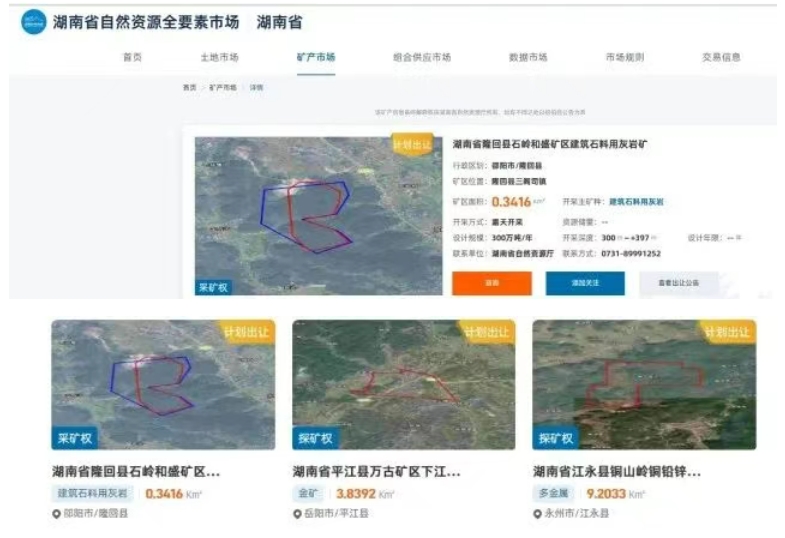 湖南省自然資源廳近日創(chuàng)新推出“不打烊的礦業(yè)權超市”,在湖南省自然資源全要素市場上線,旨在深化礦產資源要素市場化配置改革,持續(xù)加大礦業(yè)權推介出讓力度,進一步激發(fā)礦業(yè)權市場活力。 “不打烊的礦業(yè)權超市”依托湖南省自然資源全要素市場,將礦業(yè)權交易與傳統(tǒng)超市理念深度融合,通過線上線下一體化服務,實現(xiàn)礦業(yè)權出讓信息集中發(fā)布、政策咨詢、供需對接等全流程功能。 首批上架礦業(yè)權共計15個(探礦權10個、采礦權5個),探礦權分布于平江、臨武、醴陵、雙峰、桃江等9個縣市區(qū),涵蓋錳、銅、鉛、鋅、金、螢石等礦種,已開展不同程度的前期勘查工作,具備較好的找礦潛力;采礦權分布于寧鄉(xiāng)、攸縣、隆回等5個縣市區(qū),均為砂石土類礦產,儲量規(guī)模均達中型以上。 所有礦業(yè)權均標注“商品詳情”,地理位置、面積、礦種、以往地質工作、資源潛力分析、出讓年限、起始價等信息一目了然,并配套礦區(qū)實景視頻,讓投資者“看得明白、買得放心”。同時,投資者對心儀礦業(yè)權可添加關注,將其加入個人關注列表,便于后續(xù)追蹤動態(tài)。 “不打烊的礦業(yè)權超市”正式運行,標志著湖南省礦業(yè)權交易邁入透明化、便利化新階段。下一步,湖南省自然資源事務中心將協(xié)助湖南省自然資源廳持續(xù)“補貨”優(yōu)質項目,逐步優(yōu)化“購物環(huán)境”,為礦業(yè)經濟高質量發(fā)展注入新動能。