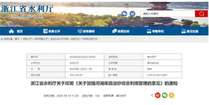 日前,浙江省水利廳印發(fā)了《關(guān)于加強(qiáng)河湖庫(kù)疏浚砂綜合利用管理的意見》的通知,堅(jiān)持保護(hù)優(yōu)先、政府主導(dǎo)、從嚴(yán)審批、嚴(yán)格監(jiān)管,嚴(yán)禁以清淤疏浚名義行采砂之實(shí),加強(qiáng)河湖庫(kù)疏浚項(xiàng)目管理,切實(shí)保障疏浚砂綜合利用規(guī)范有序。該通知自2025年6月1日起施行。 根據(jù)通知,各地要按照河湖庫(kù)行洪蓄洪、航運(yùn)發(fā)展以及生態(tài)環(huán)境修復(fù)保護(hù)的需要,依據(jù)河湖庫(kù)淤積情況,堅(jiān)持科學(xué)論證、確有必要原則,組織編制河湖庫(kù)疏浚規(guī)劃(包含疏浚內(nèi)容的相關(guān)規(guī)劃)。疏浚規(guī)劃應(yīng)當(dāng)符合流域綜合規(guī)劃、區(qū)域綜合規(guī)劃、防洪規(guī)劃等,并與航運(yùn)、漁業(yè)等規(guī)劃銜接,規(guī)劃期限為5-10年。 省級(jí)河道的疏浚規(guī)劃由省水行政主管部門組織編制,征求省相關(guān)部門意見后,報(bào)省人民政府批準(zhǔn)。其中,起止點(diǎn)在同一設(shè)區(qū)的市范圍內(nèi)的省級(jí)河道的疏浚規(guī)劃,省人民政府可以決定按照市級(jí)河道專業(yè)規(guī)劃編制和批準(zhǔn)。市級(jí)河道的疏浚規(guī)劃由河道所在地設(shè)區(qū)的市水行政主管部門組織編制,征求相關(guān)部門和省水行政主管部門意見后,報(bào)本級(jí)人民政府批準(zhǔn)。縣級(jí)和鄉(xiāng)級(jí)河道的疏浚規(guī)劃由縣(市、區(qū))水行政主管部門組織編制,征求相關(guān)部門和設(shè)區(qū)的市水行政主管部門意見后,報(bào)本級(jí)人民政府批準(zhǔn)。經(jīng)批準(zhǔn)的河湖庫(kù)疏浚規(guī)劃是河湖庫(kù)疏浚、砂石利用與監(jiān)管的依據(jù)。 規(guī)范疏浚項(xiàng)目過程管理 (一)壓實(shí)主體責(zé)任 疏浚項(xiàng)目應(yīng)嚴(yán)格按照基本建設(shè)項(xiàng)目管理,實(shí)行項(xiàng)目法人責(zé)任制、招投標(biāo)制、建設(shè)監(jiān)理制、合同管理制等制度,落實(shí)建設(shè)、設(shè)計(jì)、施工、監(jiān)理等各方主體責(zé)任,加強(qiáng)質(zhì)量、安全監(jiān)督管理。水行政主管部門加強(qiáng)對(duì)疏浚項(xiàng)目審核和現(xiàn)場(chǎng)監(jiān)督管理。 (二)加強(qiáng)現(xiàn)場(chǎng)監(jiān)管 疏浚項(xiàng)目應(yīng)嚴(yán)格按照批準(zhǔn)的疏浚設(shè)計(jì)方案開展疏浚作業(yè),不得擅自變更疏浚范圍、控制高程、疏浚方式、疏浚期限等,不得超范圍、超深度、超期限、超批復(fù)量疏浚,確需變更的,須原審批單位按程序批準(zhǔn)。 嚴(yán)格落實(shí)疏浚現(xiàn)場(chǎng)安全生產(chǎn)管理責(zé)任制和施工安全防范措施,嚴(yán)禁未經(jīng)審批擅自在河道管理范圍內(nèi)設(shè)置堆場(chǎng),嚴(yán)格落實(shí)疏浚過程中生態(tài)敏感區(qū)、航道、工程安全防護(hù)區(qū)等區(qū)域的有效保護(hù)措施,按要求設(shè)置疏浚公示牌并保證投訴舉報(bào)電話暢通。 (三)加強(qiáng)驗(yàn)收管理 疏浚項(xiàng)目完成后,項(xiàng)目法人應(yīng)及時(shí)組織開展水下地形復(fù)測(cè)、場(chǎng)地平復(fù)、生態(tài)修復(fù)等工作,撤離施工機(jī)械及管理、生活設(shè)施,恢復(fù)疏浚作業(yè)區(qū)域河湖面貌。疏浚項(xiàng)目具備驗(yàn)收條件時(shí),應(yīng)當(dāng)依據(jù)有關(guān)規(guī)定及時(shí)組織驗(yàn)收,疏浚項(xiàng)目所在地的水行政主管部門應(yīng)當(dāng)組織或參與驗(yàn)收,并做好監(jiān)督管理工作。 (四)加強(qiáng)信息化管理 地方水行政主管部門要指導(dǎo)疏浚項(xiàng)目實(shí)施單位加強(qiáng)數(shù)字化智能化監(jiān)管。疏浚砂石的運(yùn)輸、過駁、裝卸、堆存等環(huán)節(jié)要嚴(yán)格落實(shí)河湖庫(kù)砂石采運(yùn)電子管理單制度,積極推進(jìn)基于北斗等技術(shù)應(yīng)用的數(shù)字圍欄設(shè)置、疏浚機(jī)具定位、疏浚高程控制、疏浚量精準(zhǔn)管控、高清視頻監(jiān)控、運(yùn)砂車船管控、自動(dòng)稱重計(jì)量等數(shù)字化智能化監(jiān)管。 規(guī)范疏浚砂綜合利用管理 (一)加強(qiáng)疏浚砂綜合利用過程管理 在河湖庫(kù)(含河道、湖泊、水庫(kù)、山塘、人工水道、蓄滯洪區(qū))管理范圍內(nèi)實(shí)施的疏浚項(xiàng)目,涉及砂(石、土)需上岸進(jìn)行利用的,均納入疏浚砂綜合利用管理。疏浚砂由縣級(jí)以上人民政府統(tǒng)一處置,優(yōu)先保障河湖庫(kù)保護(hù)等水利工程、重點(diǎn)基礎(chǔ)設(shè)施建設(shè)和民生、公益性工程,在此基礎(chǔ)上確有余量的可兼顧市場(chǎng)需求。 縣級(jí)以上人民政府水行政主管部門提請(qǐng)本級(jí)人民政府制定本行政區(qū)域河湖庫(kù)疏浚砂綜合利用工作方案,明確可利用量、上岸方式、堆放場(chǎng)地、處置方案以及組織實(shí)施、監(jiān)督管理等內(nèi)容。建立政府主導(dǎo)、水利主管、企業(yè)主營(yíng)、集約處置的河湖庫(kù)疏浚砂綜合利用模式,實(shí)現(xiàn)河湖庫(kù)疏浚及砂石上岸、運(yùn)輸、加工、儲(chǔ)存、銷售等全過程統(tǒng)一管理。 疏浚砂綜合利用收入應(yīng)納入地方政府非稅收入管理,主要用于河湖庫(kù)保護(hù)治理、管理。 (二)加強(qiáng)涉砂違法違規(guī)行為處置 各級(jí)水行政主管部門要進(jìn)一步加大對(duì)河湖庫(kù)