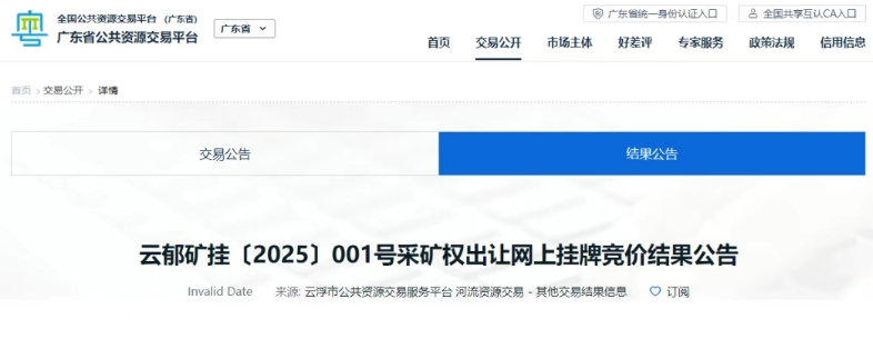 近日,廣東省云浮市郁南縣發(fā)布郁南縣南江河蓮塘河段河砂可采區(qū)開采權(quán)第二次掛牌競價結(jié)果公告,郁南縣興正建材有限公司以855.36萬元成功競得該項目。