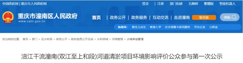 近日,重慶市潼南區(qū)發(fā)布涪江干流潼南(雙江至上和段)河道清淤項目環(huán)境影響評價公眾參與第一次公示。