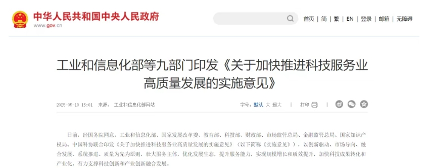 日前,經(jīng)國(guó)務(wù)院同意,工業(yè)和信息化部、國(guó)家發(fā)展改革委、教育部、科技部、財(cái)政部、市場(chǎng)監(jiān)管總局、金融監(jiān)管總局、國(guó)家知識(shí)產(chǎn)權(quán)局、中國(guó)科協(xié)聯(lián)合印發(fā)《關(guān)于加快推進(jìn)科技服務(wù)業(yè)高質(zhì)量發(fā)展的實(shí)施意見(jiàn)》(以下簡(jiǎn)稱《實(shí)施意見(jiàn)》),以創(chuàng)新驅(qū)動(dòng)、市場(chǎng)導(dǎo)向、融合發(fā)展、系統(tǒng)推進(jìn)、質(zhì)量為先為原則,壯大服務(wù)主體,優(yōu)化發(fā)展生態(tài),提升服務(wù)能力,實(shí)現(xiàn)規(guī)模增長(zhǎng)和質(zhì)效提升,加快科技成果轉(zhuǎn)化和產(chǎn)業(yè)化,有力支撐科技創(chuàng)新和產(chǎn)業(yè)創(chuàng)新融合發(fā)展。