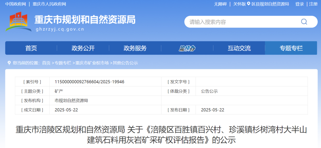 1.涪陵區(qū)百勝鎮(zhèn)百興村、珍溪鎮(zhèn)杉樹(shù)灣村大半山建筑石料用灰?guī)r礦:該采礦權(quán)位于重慶市涪陵區(qū)百勝鎮(zhèn)百興村境內(nèi),可采儲(chǔ)量4569.22萬(wàn)噸,生產(chǎn)規(guī)模210萬(wàn)噸/年,礦山服務(wù)年限21.76年,采礦權(quán)評(píng)估價(jià)值16430.46萬(wàn)元。