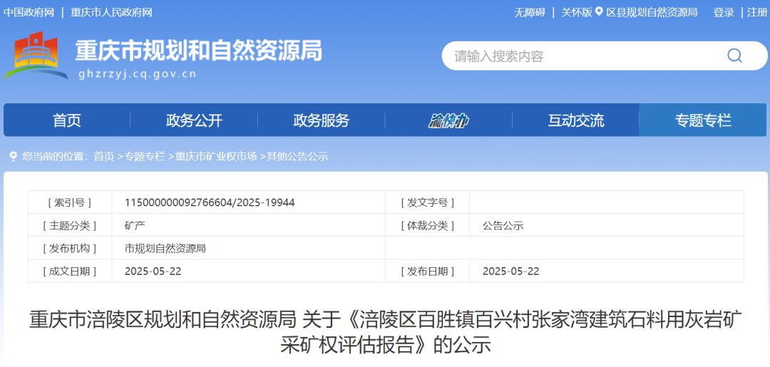 2.涪陵區(qū)百勝鎮(zhèn)百興村張家灣建筑石料用灰?guī)r礦:該采礦權(quán)位于重慶市涪陵區(qū)百勝鎮(zhèn)百興村境內(nèi),可采儲(chǔ)量1012.70萬(wàn)噸,生產(chǎn)規(guī)模200萬(wàn)噸/年,礦山服務(wù)年限5.06年,采礦權(quán)評(píng)估價(jià)值4137.59萬(wàn)元。