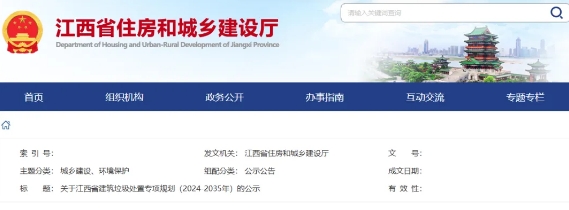 獲悉,5月26日,江西省住建廳公示《江西省建筑垃圾處置專(zhuān)項(xiàng)規(guī)劃(2024-2035年)》。