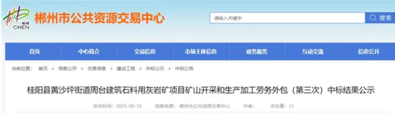 6月16日,湖南省郴州市公共資源交易中心發(fā)布桂陽縣黃沙坪街道周臺(tái)建筑石料用灰?guī)r礦項(xiàng)目礦山開采和生產(chǎn)加工勞務(wù)外包(第三次)中標(biāo)結(jié)果公示。中標(biāo)單位為當(dāng)?shù)孛衿蠛鲜∩爻拷ㄔO(shè)工程有限公司,投標(biāo)總價(jià)超2652.78萬元,碎石投標(biāo)報(bào)價(jià)單價(jià)13.95元/噸,機(jī)制砂投標(biāo)報(bào)價(jià)單價(jià)16.7元/噸。 根據(jù)公告,項(xiàng)目服務(wù)內(nèi)容主要包括: (一)采取開采、加工等勞務(wù)外包方式,擬定開采數(shù)量為年產(chǎn)約60萬噸,其中碎石42萬噸,占70%;機(jī)制砂18萬噸,占比30%。最終以實(shí)際開采的數(shù)量進(jìn)行結(jié)算。 (二)項(xiàng)目勞務(wù)外包指礦山開采工作和生產(chǎn)加工工作,礦山開采勞務(wù)外包工作包含但不限于表土剝離、爆破、裝車、轉(zhuǎn)運(yùn)、采場(chǎng)道路、排土場(chǎng)道路的修建維護(hù)等工作(其中挖掘機(jī)、裝載機(jī)等移動(dòng)開采設(shè)備由投標(biāo)人負(fù)責(zé));生產(chǎn)加工工作勞務(wù)外包指生產(chǎn)人工、材料、電力、機(jī)械維修等工作。 此外,因火工品、燃油、人工成本、設(shè)備維修材料等成本單價(jià)發(fā)生變化,勞務(wù)外包每噸石料的生產(chǎn)成本發(fā)生變化的幅度超過原每噸生產(chǎn)成本的10%時(shí),勞務(wù)外包單位向招標(biāo)人提出價(jià)格變動(dòng)的申請(qǐng),經(jīng)郴州市礦業(yè)周臺(tái)建材有限公司董事會(huì)研究決定予以調(diào)整;反之因火工品、燃油、人工成本、設(shè)備維修材料等成本單價(jià)發(fā)生變化,勞務(wù)外包每噸石料的生產(chǎn)成本發(fā)生變化的幅度低于原每噸生產(chǎn)成本的10%時(shí),招標(biāo)人有權(quán)對(duì)單價(jià)進(jìn)行調(diào)整,調(diào)整方式經(jīng)雙方共同協(xié)商。