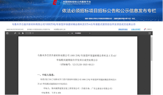 近日,中國招標投標公共服務(wù)平臺發(fā)布新疆烏魯木齊日昌升新材料有限公司1000萬噸/年新型環(huán)保建材精品骨料及5萬方/年裝配式建筑綜合開發(fā)項目成交結(jié)果公示。徐州威博建筑安裝工程有限公司、廣東弘基設(shè)計有限公司民企組成的聯(lián)合體中標,暫未公布中標價格。據(jù)此前招標公告顯示,該項目投資資金4.4億元。 據(jù)招標公告顯示,該項目按照一期規(guī)劃、分期實施節(jié)奏,項目分兩期實施。一期工程建設(shè)500萬噸/年綠色環(huán)保機制骨料項目,同時,一期工程包括了全項目的所有配套設(shè)施;二期工程建設(shè)500萬噸/年綠色環(huán)保機制骨料項目和5萬方/年的裝配置建筑項目。 施工范圍一期包括:綜合辦公樓一座、實驗室及展廳一座、500萬噸綠色精品骨料生產(chǎn)線一條,包括破碎車間一座、篩分車間一座、整形車間一座、封閉式成品儲存庫及配套發(fā)運區(qū)、智能化控制室一座、變壓總降車間一座、精品制砂車間一座及其他配套輔助設(shè)施,并購置相關(guān)設(shè)備。 二期包括:500萬噸/年綠色環(huán)保機制骨料項目,建設(shè)5萬方裝配式建筑生產(chǎn)線一條、配套商砼站一座及其他配套輔助設(shè)施,并購置相關(guān)設(shè)備。 另外,該項目采用工程總承包(EPC)方式,中標人負責烏魯木齊日昌升新材料有限公司1000萬噸/年新型環(huán)保建材精品骨料及5萬方/年裝配式建筑綜合開發(fā)項目完整的設(shè)計及優(yōu)化、設(shè)備及材料供貨、工程施工、調(diào)試(單機、分系統(tǒng)、整個裝置空載試運、帶負荷直至滿載試運)、試驗、檢驗、技術(shù)服務(wù)、消缺和最終交付等所有工作。