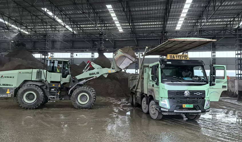 裝載車輛正在廠房?jī)?nèi)進(jìn)行再生后的物料裝載作業(yè)