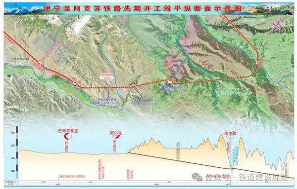 其中,鐵路方面,伊寧至阿克蘇鐵路起自既有精霍鐵路伊寧站,利用精霍鐵路向東至布列開站接軌引出,新建線路經鞏留、新源,走行于伊犁河谷至巴音布魯克景區(qū),沿著名的獨庫公路走向通過長大隧道穿越天山,接入既有庫俄鐵路庫臺克力克站,利用并改建既有庫俄鐵路接入南疆鐵路,利用南疆鐵路至阿克蘇站。