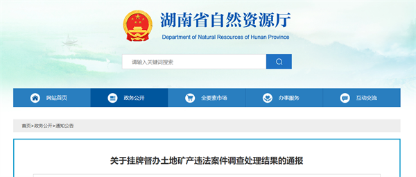 日前,湖南省自然資源廳通報掛牌督辦8起土地礦產(chǎn)違法案件調(diào)查處理結(jié)果。其中,在礦產(chǎn)方面,共包括4起非法開采和1起越界開采等礦產(chǎn)違法案例,涉及邵陽、永州、懷化等多地企業(yè)。