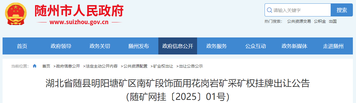 日前,湖北隨州人民政府發(fā)布湖北省隨縣明陽塘礦區(qū)南礦段飾面用花崗巖礦采礦權(quán)掛牌出讓公告。該項目保有資源儲量8050.6萬方,根據(jù)礦產(chǎn)資源開發(fā)利用和生態(tài)復(fù)綠方案,該礦設(shè)計可作建筑砂石料綜合回收利用的尾礦尾渣及風(fēng)化層剝離量15874.61萬噸,年生產(chǎn)規(guī)模建筑用花崗巖563萬噸(綜合利用);設(shè)計服務(wù)年限29.2年(含基建期1年)。掛牌起始價為人民幣80252.71萬元。本次出讓不接受自然人或企業(yè)聯(lián)合體報名。