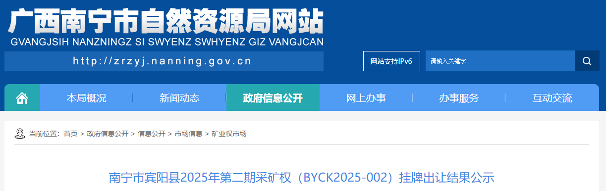 南寧市賓陽縣2025年第二期采礦權(quán)(BYCK2025-002)掛牌出讓結(jié)果公示