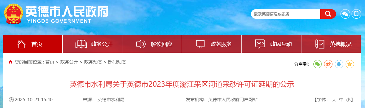 近日,廣東英德市水利局發(fā)布《英德市2023年度滃江采區(qū)河道河采砂許可證延期的公示》。滃江采區(qū)多個(gè)開采河段延長(zhǎng)開采期。