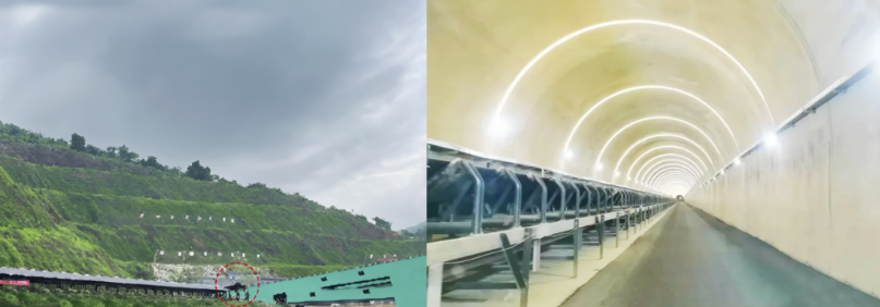 2019年,中建材新材料有限公司通過“凈礦”出讓模式取得該項目采礦權(quán),2022年建成投產(chǎn)。該項目采礦環(huán)節(jié)創(chuàng)新采用平硐溜井開拓工藝,實現(xiàn)安全高效開采;加工環(huán)節(jié)依托硐室封閉生產(chǎn),減少露天作業(yè)對環(huán)境的影響;運輸環(huán)節(jié)通過封閉式廊道輸送,杜絕粉塵與噪聲污染,減輕道路運輸壓力。