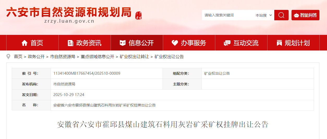 近日,安徽省六安市霍邱縣煤山建筑石料用灰?guī)r礦,本次出讓礦資源量2584.80萬(wàn)立方米(7185.74 萬(wàn)噸)。出讓期限14年8個(gè)月(含基建期1年6個(gè)月),起始價(jià):63000萬(wàn)元,經(jīng)計(jì)算單價(jià)超8.76元/噸。