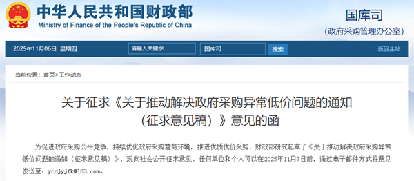 日前,財(cái)政部發(fā)布關(guān)于征求《關(guān)于推動(dòng)解決政府采購異常低價(jià)問題的通知(征求意見稿)》意見的函。
