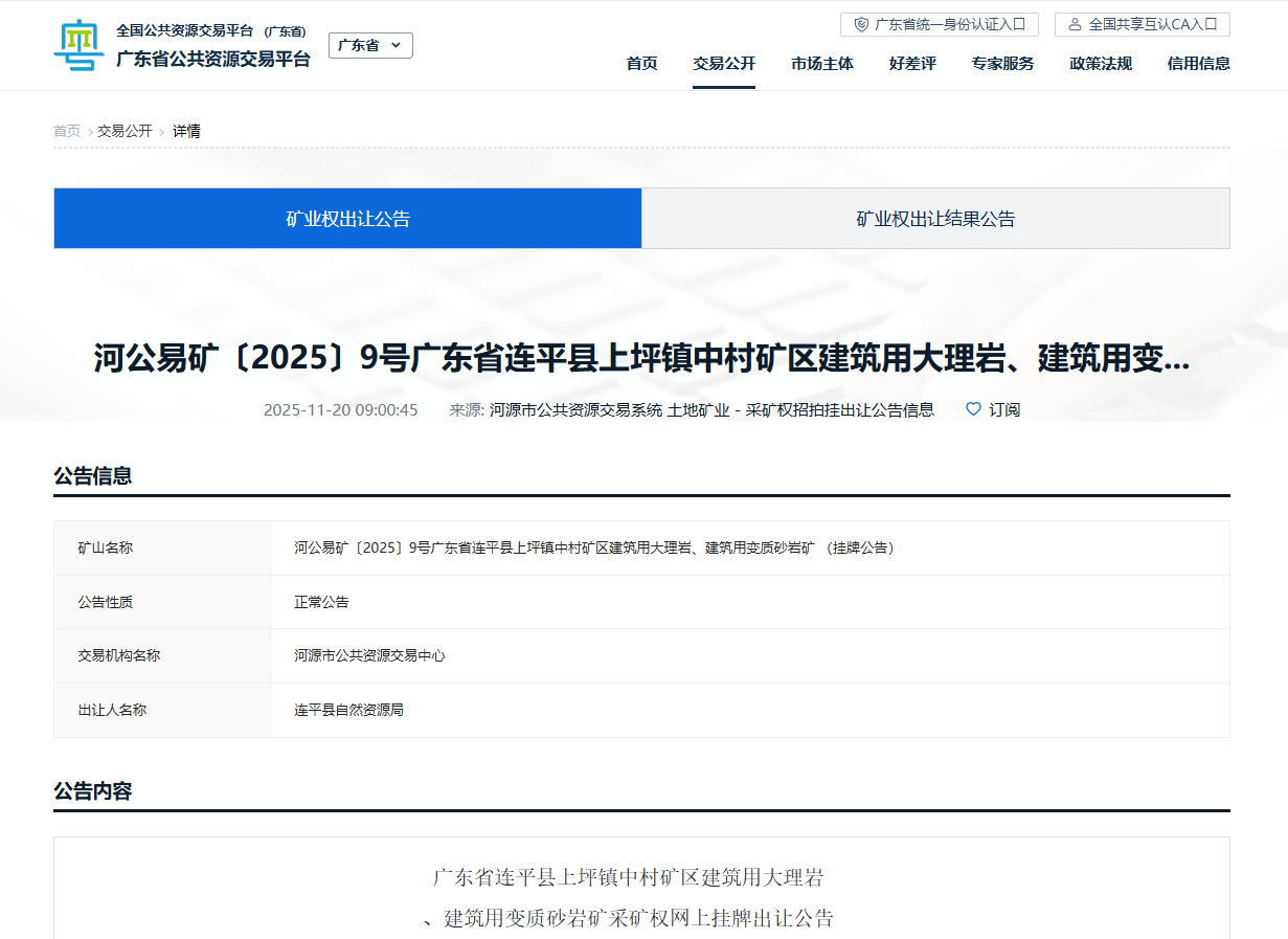 擬出讓采礦權(quán)名稱:廣東省連平縣上坪鎮(zhèn)中村礦區(qū)建筑用大理巖、建筑用變質(zhì)砂巖礦;