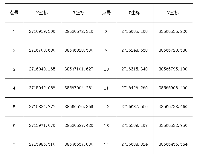 由14個(gè)拐點(diǎn)圈定,拐點(diǎn)坐標(biāo)詳見下表(2000國家大地坐標(biāo)系):