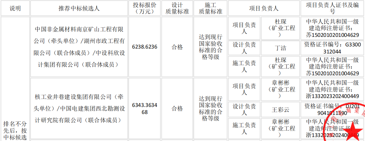 核工業(yè)井巷建設集團有限公司(牽頭單位)/中國電建集團西北勘測設計研究院有限公司(聯(lián)合體成員)