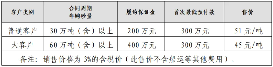 2025年12月2日,南昌贛昌砂石有限公司發(fā)布出采區(qū)砂石省內(nèi)銷售方案公告,根據(jù)公告內(nèi)容,本次銷售砂石為贛江流域所采砂石,總量約400萬噸,普通客戶(合同周期年購砂量30萬噸以上)售價(jià)51元/噸,大客戶(合同周期年購砂量60萬噸以上)售價(jià)45元/噸。