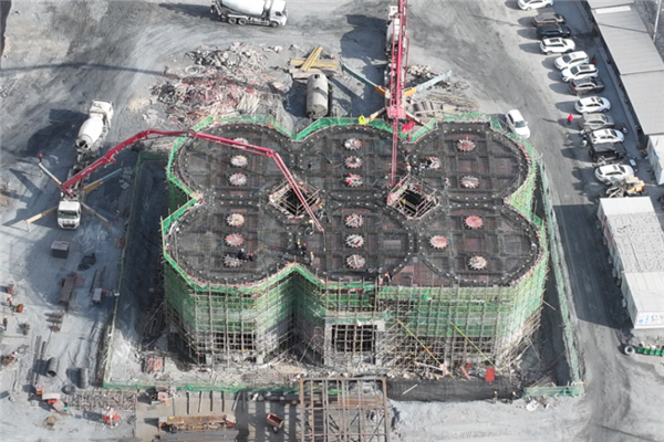 生產(chǎn)線部分,核心生產(chǎn)設(shè)施初具規(guī)模,制砂樓安裝基本完成;連接廊道正緊鑼密鼓進(jìn)行焊接,各關(guān)鍵設(shè)施間的銜接即將全面打通。同時(shí),配套商砼站地基建設(shè)已全部完工,核心設(shè)備安裝工作全面啟動。各環(huán)節(jié)協(xié)同發(fā)力、銜接有序,展現(xiàn)出立體推進(jìn)的良好態(tài)勢。而本次成品罐倉基礎(chǔ)封頂,更是標(biāo)志著項(xiàng)目在多線程推進(jìn)中取得了關(guān)鍵性突破。