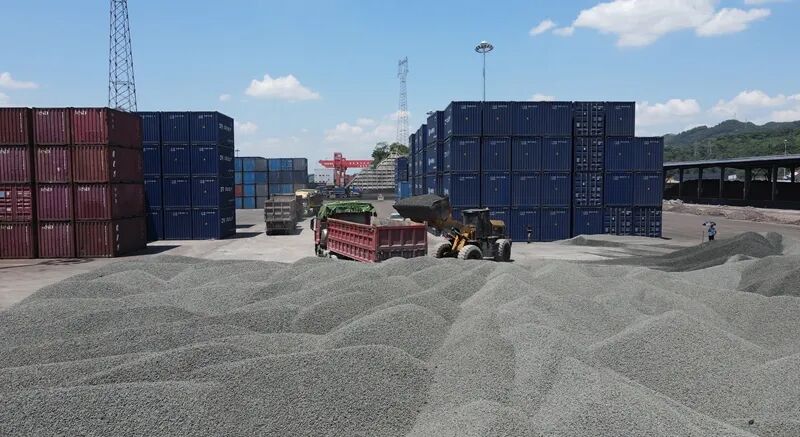 玄武巖砂石集料在重慶珞璜港集散中心進(jìn)行轉(zhuǎn)運(yùn)