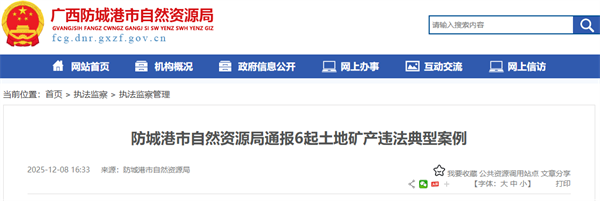日前,廣西防城港市自然資源局公開通報6起土地礦產(chǎn)違法典型案例。案例涉及超越礦區(qū)范圍采礦、未按批準方案施工、非法占地、無證盜采礦產(chǎn)等違法行為,相關(guān)責(zé)任主體被依法給予沒收違法所得、罰款等行政處罰,其中4起達到刑事追訴標準的案件已移交公安機關(guān),涉案人員被法院判處有期徒刑并處罰金。