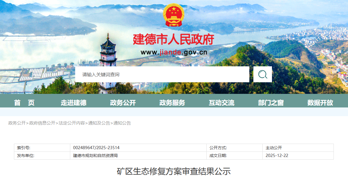 根據(jù)《土地復(fù)墾條例》《礦山地質(zhì)環(huán)境保護(hù)規(guī)定》《浙江省自然資源廳關(guān)于做好礦山地質(zhì)環(huán)境保護(hù)與土地復(fù)墾方案編制審查有關(guān)工作的通知》(浙自然資規(guī)〔2023〕5號)《自然資源部辦公廳關(guān)于做好<礦產(chǎn)資源法>實(shí)施過渡期內(nèi)礦區(qū)生態(tài)修復(fù)方案編制評審有關(guān)工作的通知》等有關(guān)要求,我局委托建德市自然資源綜合服務(wù)中心組織專家對《浙江省建德市梅城鎮(zhèn)濱江村官路邊礦區(qū)建筑用安山巖礦生態(tài)修復(fù)方案》(以下簡稱“方案”)進(jìn)行了評審。現(xiàn)將擬同意通過的方案和專家意見進(jìn)行公示,公示期為自發(fā)布之日起7個(gè)工作日。