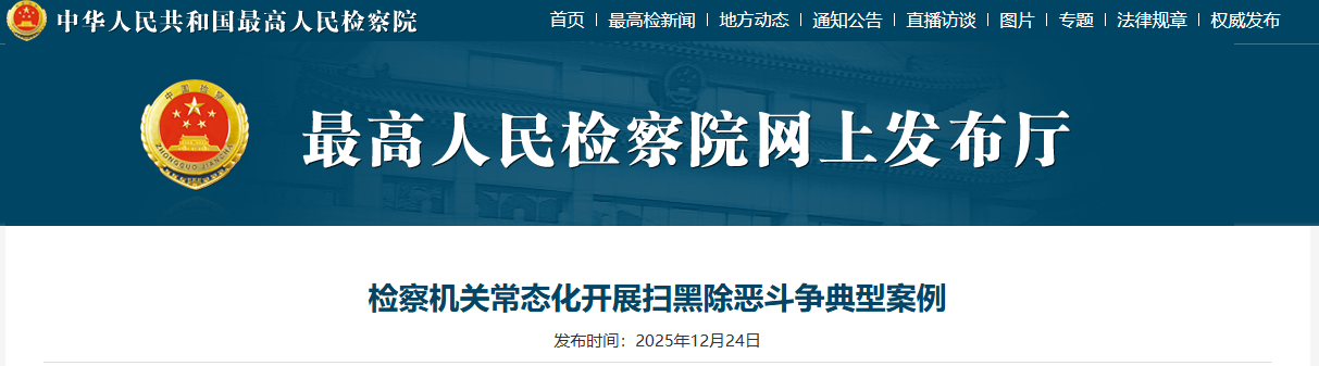 12月24日,最高檢發(fā)布一批檢察機關(guān)常態(tài)化開展掃黑除惡斗爭典型案例。安徽一涉黑惡組織為非作惡、欺壓群眾,長期超出采礦許可證范圍大肆非法采砂數(shù)百萬噸,造成國家礦產(chǎn)資源重大損失,還腐蝕多名國家工作人員充當“保護傘”,稱霸一方,主犯被判有期徒刑二十五年。