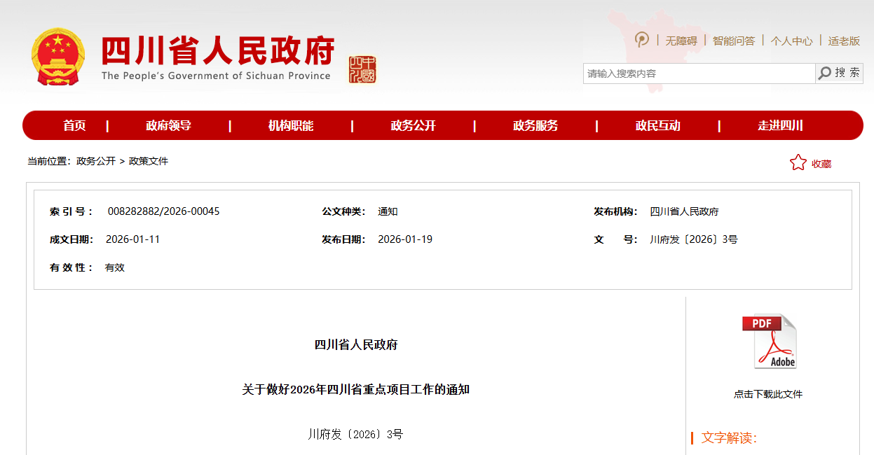 1月9日,四川省人民政府印發(fā)《關(guān)于做好2026年四川省重點(diǎn)項(xiàng)目工作的通知》(以下簡(jiǎn)稱(chēng)《通知》),對(duì)2026年省重點(diǎn)項(xiàng)目工作進(jìn)行全面部署,并隨文發(fā)布《2026年四川省重點(diǎn)項(xiàng)目名單》,共列項(xiàng)目830個(gè),其中續(xù)建項(xiàng)目526個(gè)、新開(kāi)工項(xiàng)目304個(gè),2026年預(yù)計(jì)完成投資7624.8億元。