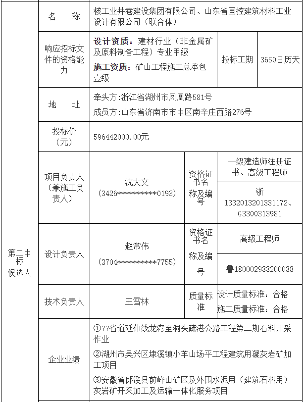 核工業(yè)井巷建設(shè)集團有限公司、山東省國控建筑材料工業(yè)設(shè)計有限公司(聯(lián)合體)